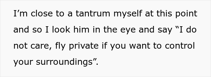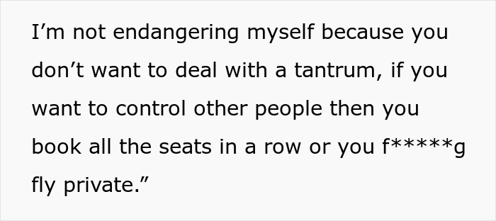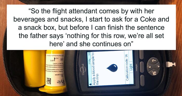 The woman kept talking about her son’s condition and nagging the OP about how their behavior affected the child – however, the author had had enough and told the mother that, frankly, they didn’t care and that they would handle their type 1 diabetes the way they see fit. The passenger said that they’re not risking their life just because the parents are not in the mood to deal with their offspring’s tantrum and that they should’ve at least booked a whole row if they didn’t want to deal with their son’s outburst.