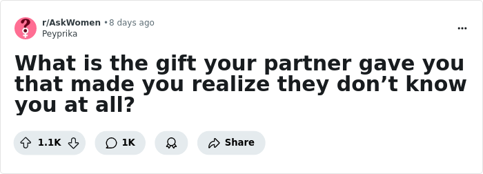 On the flip side, gifts are also a way of realizing how much someone doesn’t know you enough, if at all. These women of Reddit would know, and they are sharing their experiences involving their romantic partners in a recent thread.