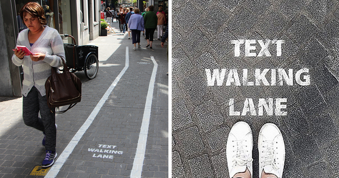 By jokingly placing “text walking lanes”, they want to prevent smartphones from breaking.