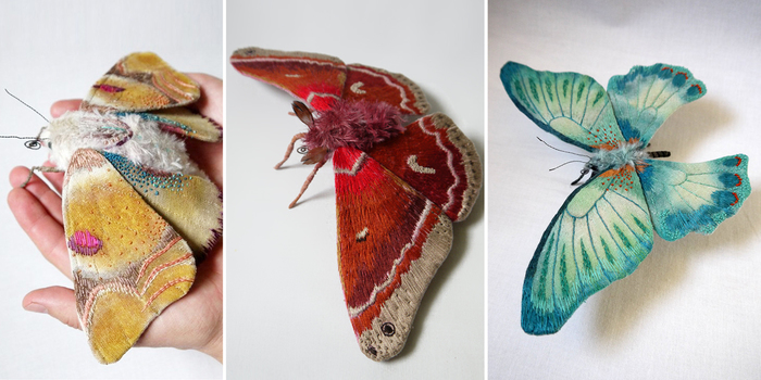 Yumi Okita, a talented North Carolina-based artist, creates beautiful embroidered art depicting large moths, the less popular but no less beautiful cousin of the ubiquitous butterfly.