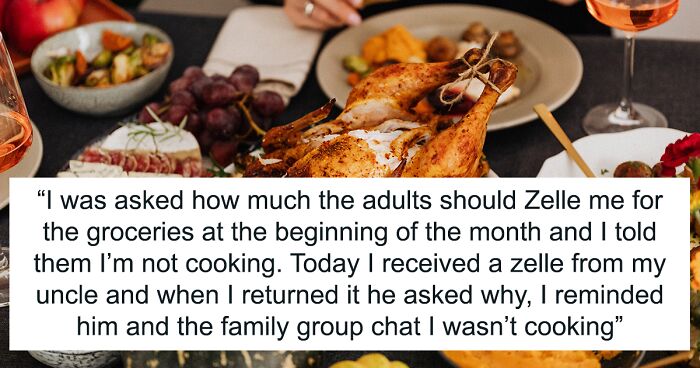 So, at the beginning of the month, when her relatives, as usual, began to ask the author how much they should chip in, she immediately wrote them back that she would not be cooking this year. Apparently, these words were not taken seriously because one of her uncles Zelle’d her the usual amount – and was incredibly surprised after getting his Zelle returned to him.