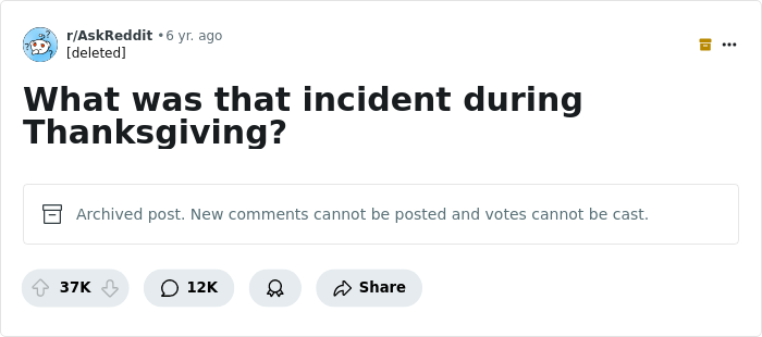 Many of you likely have Thanksgiving anecdotes of your own. After scrolling through, feel free to share them in the comments.