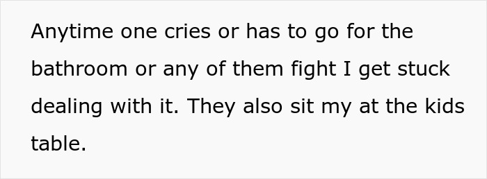 Not only is the OP stuck babysitting the children all the time, but she also has to sit at the kids’ table when she is 22 years old. The woman isn’t looking forward to Thanksgiving because she knows it will be another chore and no complaining will convince her mom to release her from this burden.