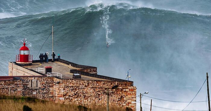 "The iconic photo of Garrett McNamara riding what everyone called the "100-foot wave", likely the world's biggest wave ever surfed, at Praia do Norte, Nazaré, Portugal."⠀