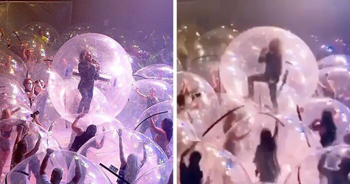 Bubbles like these are nothing new for the band since they’ve been using “space bubbles” to crowd surf since 2004. All they had to do was to set the specs, order 100 of these bubbles, and find fans who wanted to participate. On the whole, the audience consisted of 100 members.