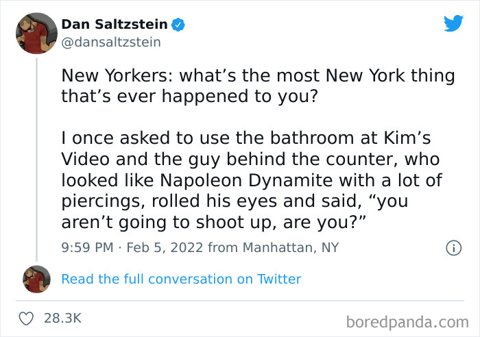 Writer, historian, and curator Hugh Ryan, who contributed to this thread with a hilarious tweet about a drag queen, grew up in the city's suburbs but his family is from the Bronx. "I've lived in NYC for the last 20+ years," Ryan told Bored Panda. "I love the constant stream of the unexpected, the way you're never sure what even just a simple subway ride will hold!"