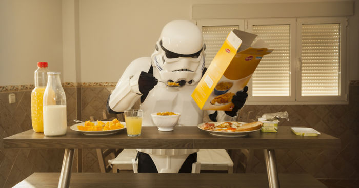 I chose Stormtroopers for several reasons. First of all, they have the capacity to be liked by several generations because the films were made in the late 70`s, late 90`s and now they are coming back. Moreover, the stormtroopers have become a pop icon that we are all familiar with and that is why I think we can identify ourselves with them. Lastly, I like stormtroopers because we don’t know their gender, so is the spectators`imagination in order to know if they are males or females. The hardest part in this project is the preparation of each set-up. This means a lot of hours photo shooting and more hours in photoshop.