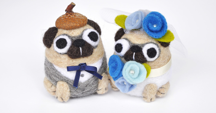 I am a huge pug fans and have been always wanting to needle felt some pug items. This time I made these two little lovers. They can be used as wedding cake topper.
