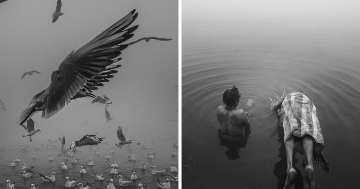 Some pray, cleansing their body and soul, meditating. Some are doing laundry or filling up water bottles to quench their thirst. Nobody minds the cattle neck-high in the water next to them or the sight of people defecating directly into the mother-river.