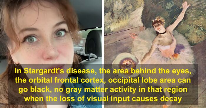 The creator said that most psychopaths and all serial killers have a dead spot in their brain right behind their eyes. And Edgar Degas was going blind over time quite likely due to his inherited Stargardt’s disease. With this disease, the area behind the eyes can go black, and gray matter activity in that region stops when the loss of visual input causes decay.
