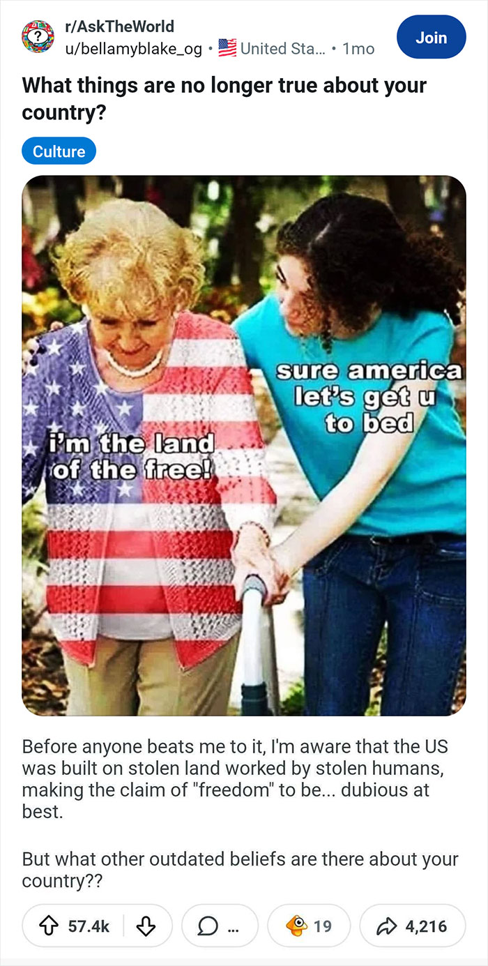 But what happens when the things a country believed about itself—the deeply held national truths and the things that used to be a source of genuine pride—start to fade away? An online community asked a sobering question: What's something that's no longer true about your country? The answers are a heartbreaking look at what happens when the postcard starts to crumble.