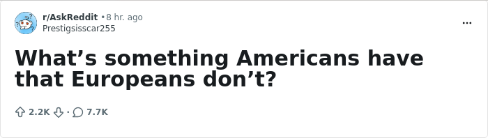 American internet users took to an online thread to share all of the things that people living in the United States have that Europeans don’t. Yellow school buses, cowboys, and free refills are just the tip of the iceberg. Check out their thoughts below.