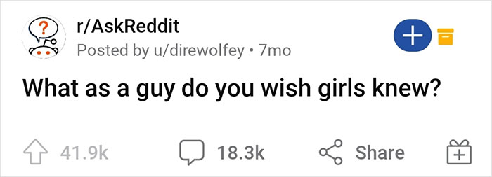 The men of Reddit have come together and shared the things that they wish women knew and the things that are important to them, in the context of romantic relationships and beyond. They opened up about cute things like the fact that men really do enjoy hugs and compliments and also broached practical topics like the need to be alone from time to time. (Hey, boundaries are important, especially in relationships.)