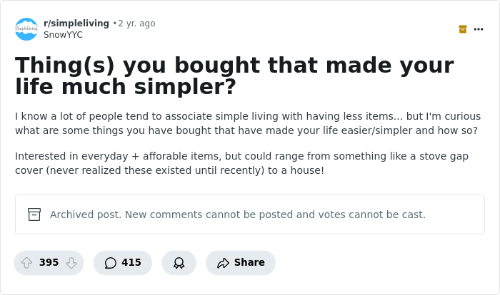 One Redditor asked folks online what everyday items they purchased which made their lives much easier, and the answers are as entertaining as they are surprising.