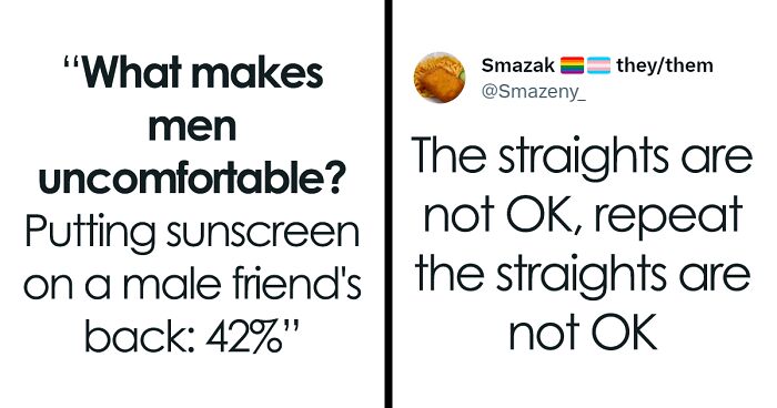 Load More Replies...I love the comments, "men need to grow up" etc, the question is what makes a man uncomfortable, and these people answered truly. So are people actively shaming them for their answers, they haven't given a reason, just filled in multiple choice answers. I would feel uncomfortable receiving flowers as a gift, as I don't like them, I would feel uncomfortable because I would be lying saying thank you. I would feel uncomfortable putting sunscreen on another man, but I would also feel uncomfortable putting it on a woman. Reading data doesn't give the whole answer.
