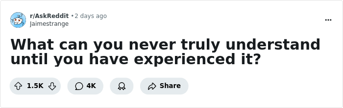 Redditors have recently been discussing experiences that no one will ever fully understand until they’ve lived them, so we’ve gathered some of their thoughts down below. From grieving a loved one to being burdened with chronic pain, I’m sure you can relate to some of the experiences here. But perhaps this list will be a reminder to be a little more sympathetic towards the things you haven't seen first hand.