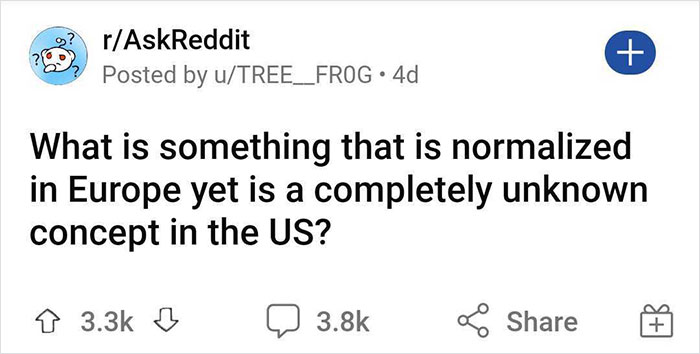 Redditor u/TREE__FR0G, an aspiring herpetologist, asked people to share the things that are completely normal in most places in Europe but would seem very strange to someone living in the US. Scroll down to see what the internet thinks are the biggest differences between Europe and the US.