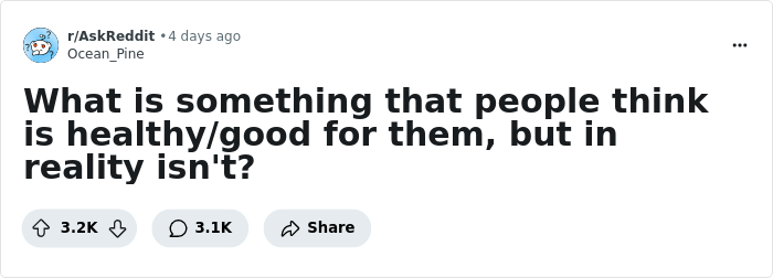 There’s a lot of contradictory information floating around health and wellness spaces. While being healthy was once as simple as eating a balanced diet, staying active and maintaining relationships with loved ones, people are constantly trying to complicate it to make a profit or simply confuse you. That’s why Reddit users have recently been discussing potentially harmful trends, behaviors and more that people often assume are “healthy." Keep reading to find a conversation with Kevin Pho, MD, and be sure to upvote the things you don’t trust either!