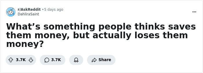 In a no-nonsense thread on AskReddit, thrifty and economically savvy internet users shared the things that can actually make people lose more money, instead of helping them save more like they thought. We’ve collected the most egregiously deceptive examples below, so scroll down to check them out. Don’t forget to take notes so you don’t fall into the same pitfalls as others.
