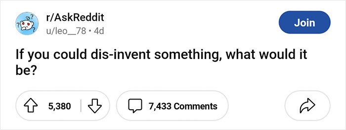 Members of the ‘Ask Reddit’ community recently discussed what things they would like to “dis-invent” if they had a chance. With answers ranging from cigarettes to social media, netizens provided some interesting perspectives, which you can find on the list below. Scroll down to view their answers and learn what inventions might not have changed our world for the better.