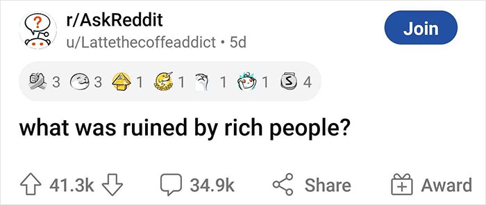 Below, you’ll find a list of some of these things that just aren’t as fun or as accessible as they used to be, so be sure to upvote any of the responses you wholeheartedly agree with. Let us know in the comments if anything else has been ruined for you by the upper class, and then if you’re interested in checking out another Bored Panda article that might make you want to eat the rich, look no further than right here!
