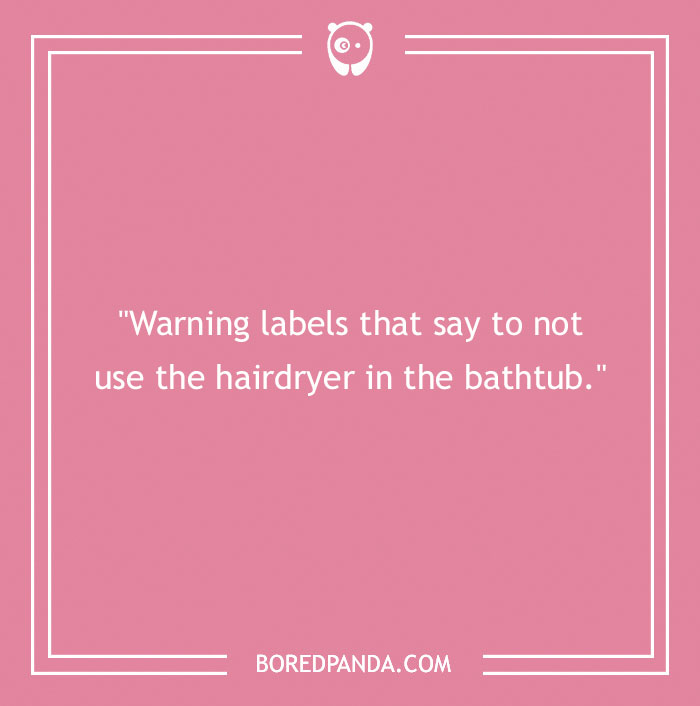 "Warning labels that say to not use the hairdryer in the bathtub."