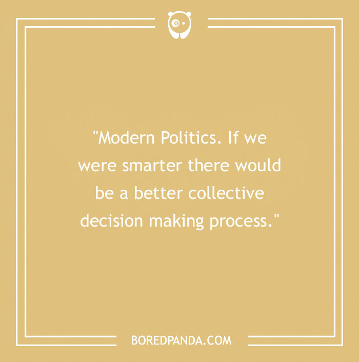 "Modern Politics. If we were smarter there would be a better collective decision making process."