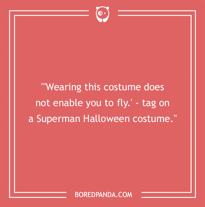 "'Wearing this costume does not enable you to fly.' - tag on a Superman Halloween costume."