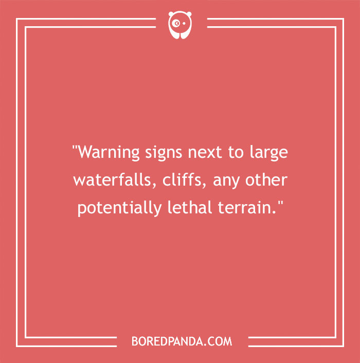 "Warning signs next to large waterfalls, cliffs, any other potentially lethal terrain."