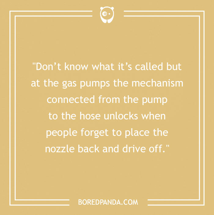 "Don’t know what it’s called but at the gas pumps the mechanism connected from the pump to the hose unlocks when people forget to place the nozzle back and drive off."