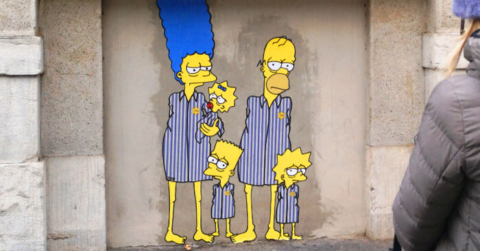 This Artist Paints ‘Simpsons’ Characters As Holocaust Victims Outside The Milan Shoah Memorial
