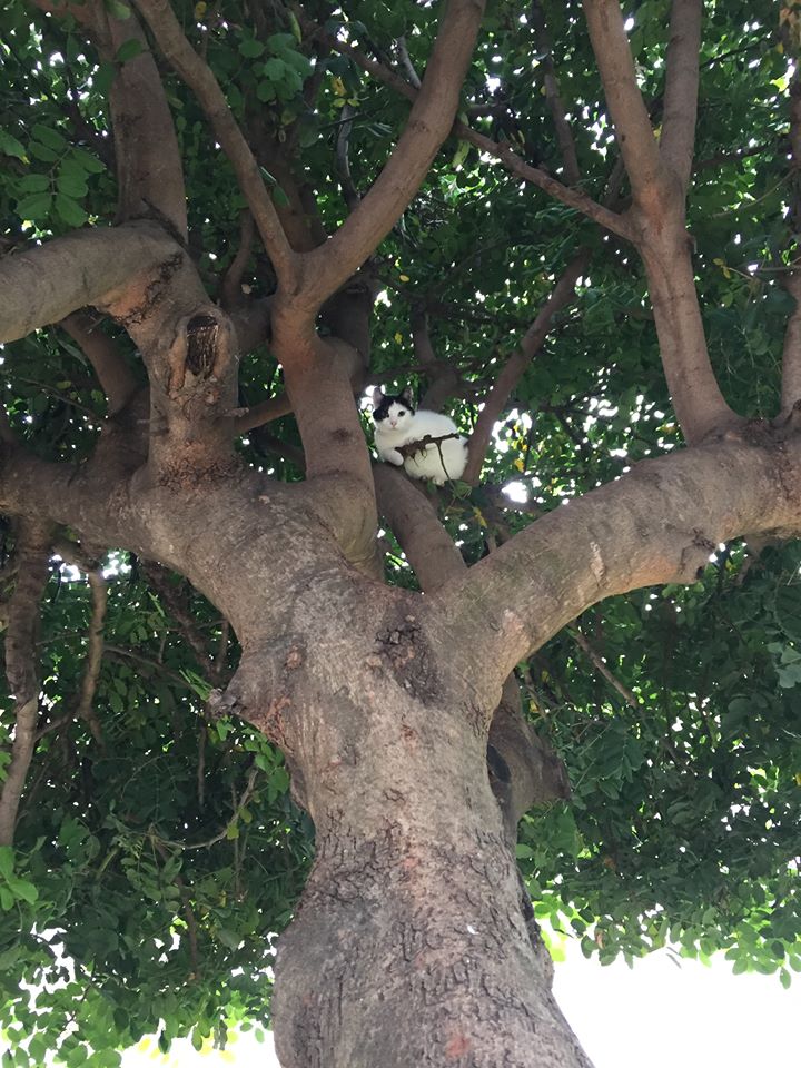 It has begun. Cats are taking over the world. This kitty was spotted in the tree holding a cat-sized machine gun, and the things are about to get messy.