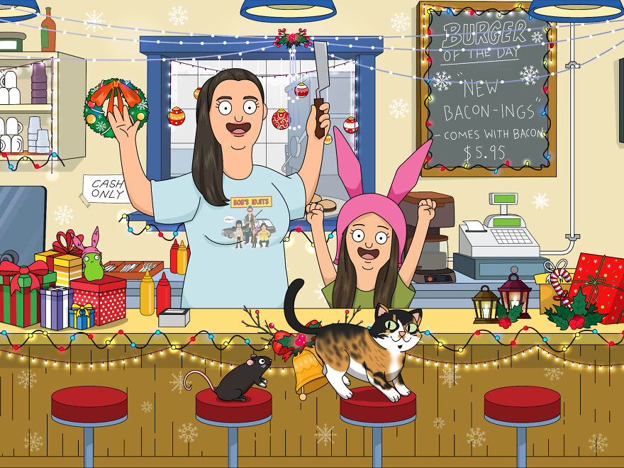 Surprise your family with a Christmas-themed bobs burger artwork this festive season and bring some life and color to that boring wall.