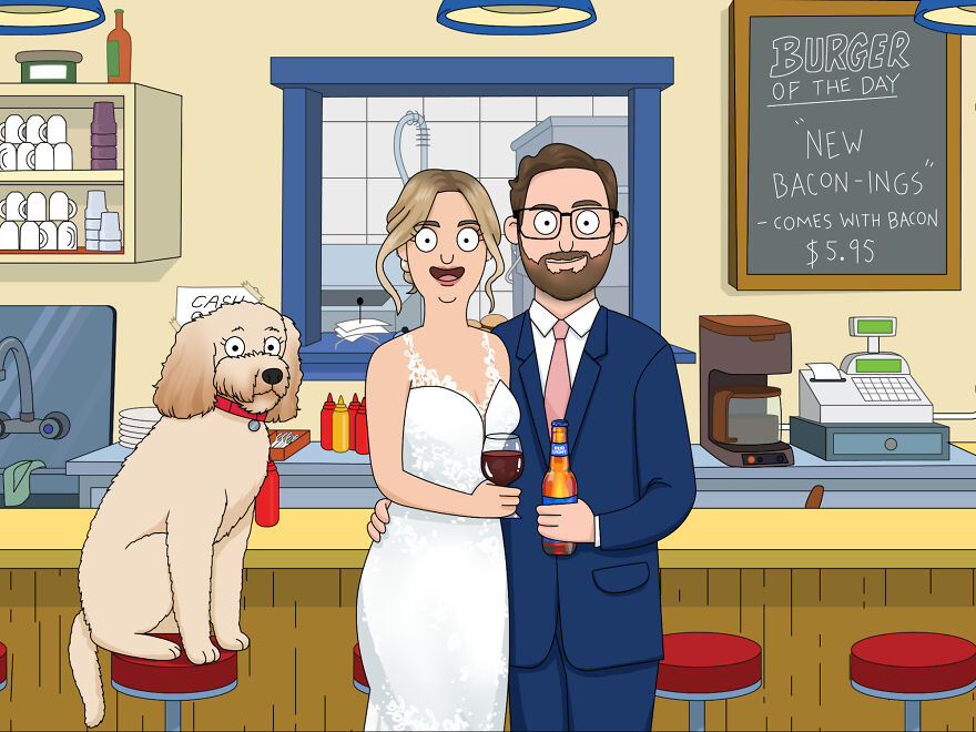 The perfect portrait does exist when you get it done from Happy Tooned. Immortalize your furry friends and cherish them forever with this custom Bob's burger artwork.