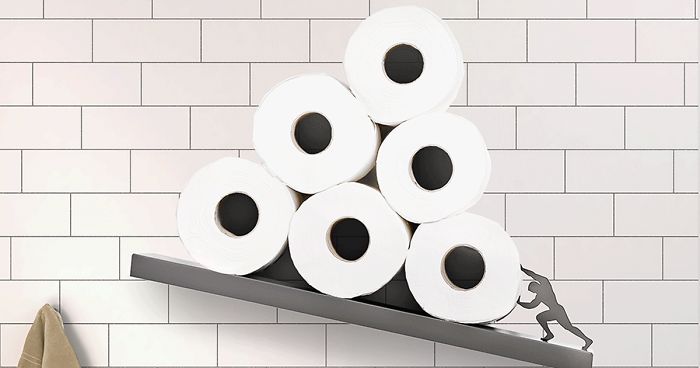 Sisyphus – a tilted toilet paper shelf by Artori Design