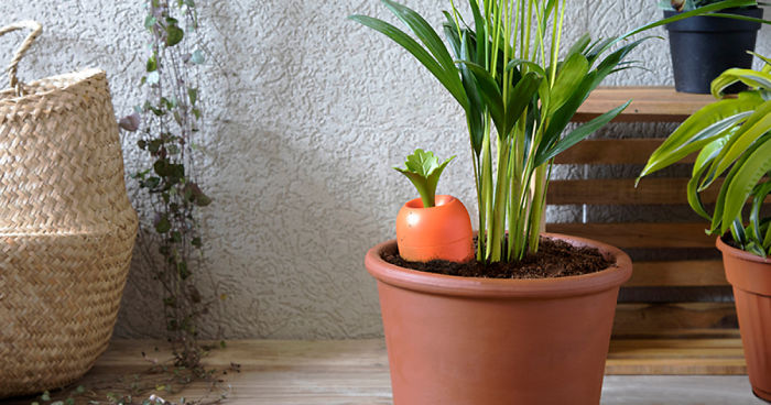 Care-it will take care of your plants for you. Stick it in a flowerpot and let it do the irrigating. You’ll know when to add water by the height of the carrot’s leaves.