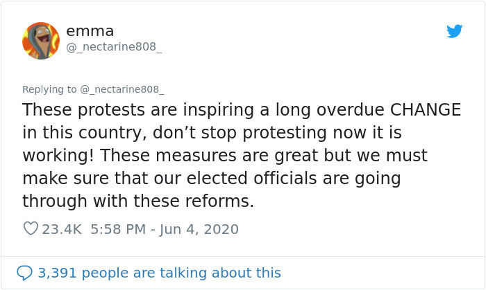 While other Twitter users pitched in and posted positive changes that the protests helped introduce or made happen faster. Emma urged protestors to keep fighting for change and to not stop just because of a handful of small victories. Scroll down and take a look for yourselves, dear Pandas.
