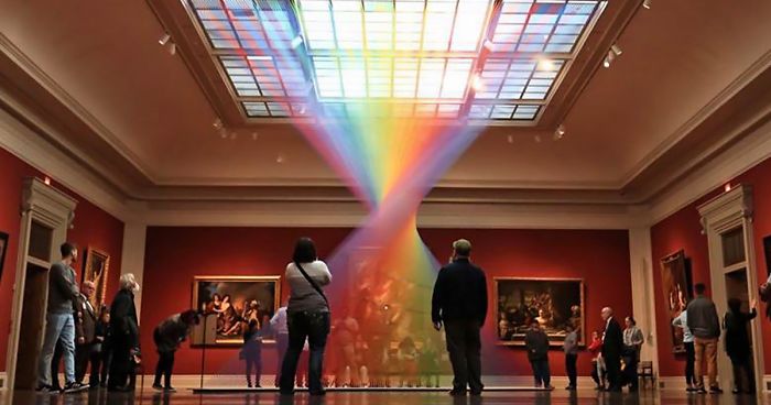 The Great Gallery of Toledo Museum of Art, Ohio, is usually filled with classic art pieces that date back decades and even hundreds of years back. But now it’s been refreshed by this gorgeous man-made rainbow placed right in the middle of it.