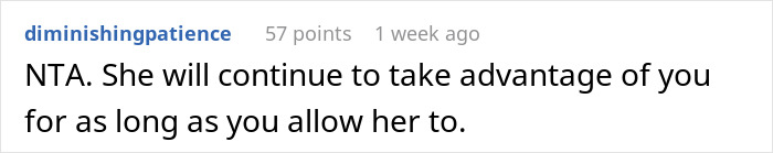 This story seems to be the perfect example of standing up for yourself when your boundaries are being crossed. At first, the author tried to solve the situation through conversation. She talked it out a few times and made her position known. She even asked her half-brother for support in communicating her needs.