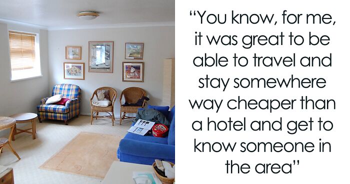 Load More Replies...I used AirBnb once and the renter was insane. We rented a small granny flat from her (one bedroom, one bathroom, kitchenette, and a living room) with a separate entrance and down the hall from her apartment. We went straight to bed the first night we arrived because we were exhausted. The next day, we had to go to a wedding so some relatives picked us up. When we returned that evening, we returned to the flat to find her and a man in our space going through our things. I was enraged and began yelling and she turned it on us saying she had every right to know who was staying there and to go through our things to make sure no drugs were being used. The she screamed that we couldn't have guests there (We didn't. She was referring to the people that picked us up, they didn't even enter the flat). We ended up grabbing our stuff and leaving and going to a hotel. When we called Airbnb to complain, we were told that the homeowner sets the rules and they couldn't help us.