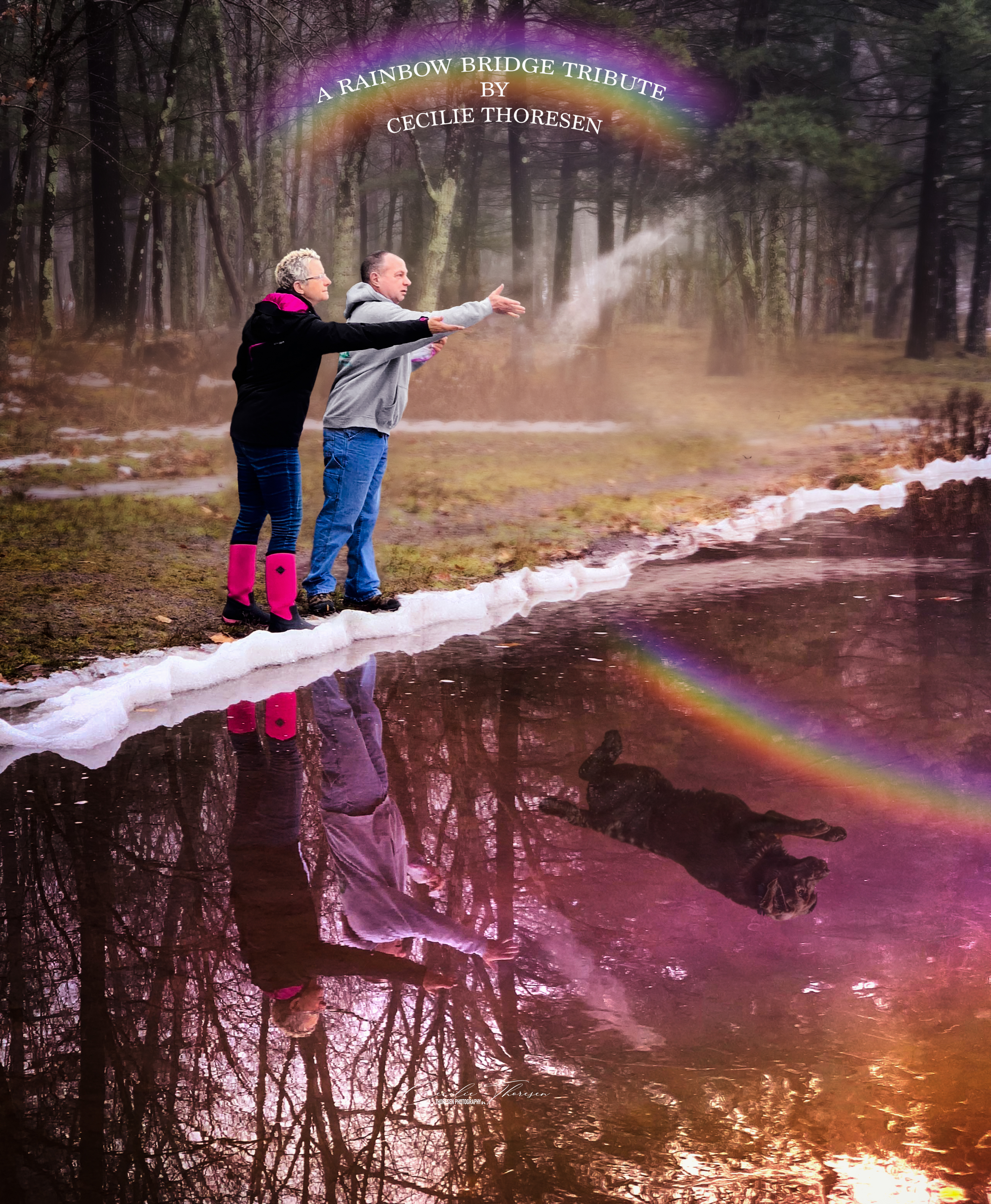 She had this photo of her and her husband spreading their beloved Timber’s ashes. She wanted me to put his reflection in the water.