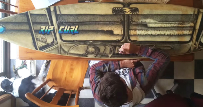 I’ve been recycling old surfboards for artwork. Having created a few boards already, I decided to time lapse my journey for this one.