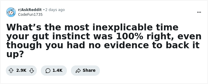 These people would know, and they are sharing their experiences in a recent Reddit thread. Some were about detecting an illness early, while others were the typical “we need to leave now” scenario that turned out to be on point.