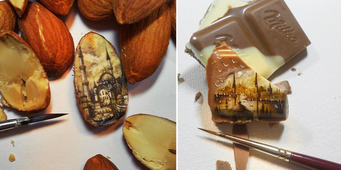 Hasan Kale, an incredibly talented artist from Turkey, pushes the boundaries of what can be achieved with paint by painting inconceivably tiny yet beautiful paintings on… just about anything, really.