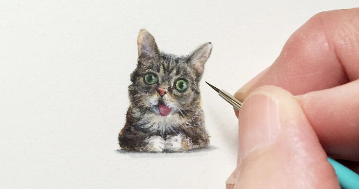 Karen Libecap, a talented artist in Alabama, paints unbelievably tiny paintings of animals, objects and pop-culture characters. Some of her miniature paintings are so tiny that they’d fit on the face of a coin!