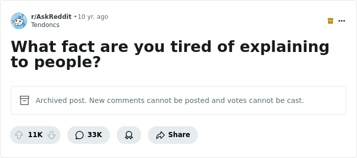 But apparently, even if you are only stating facts, there will still be people out there who aren’t fully convinced of your case. Redditors have been discussing the facts that they’re tired of having to explain to other people, so we’ve gathered some of their replies below. From dietary information to knowledge about climate change that we should all be on the same page about, enjoy scrolling through this list. And be sure to upvote the things you can't believe some people are in denial about!