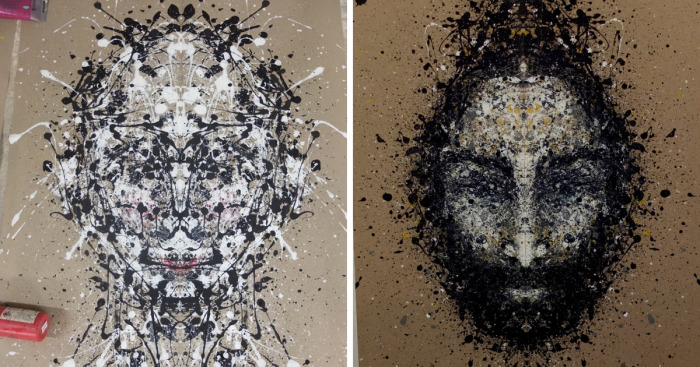 Two years ago I fell in love again with the folding-technique all of us know from the kindergarten. After many exercises and experiments, I developed this technique further until I found a way to generate faces. Now I use it for my art.
