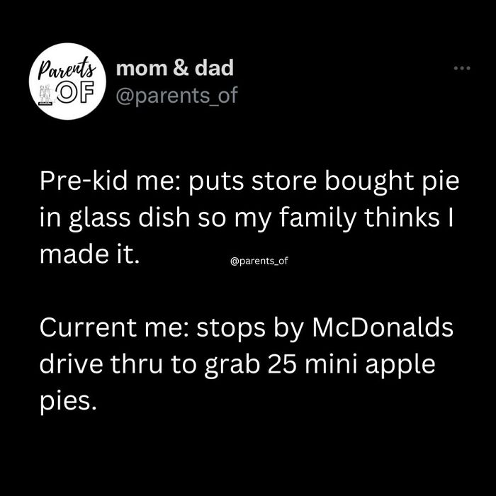Many of the pics shared on Mom & Dad come straight from their own content on Twitter, detailing what it’s like to have young kids at home and suddenly feel like your days of going out are over. There’s absolutely nothing wrong with cuddling up with your spouse and kids on the couch on a Friday night and allowing your little ones to eat chicken nuggets three times a week just so that they’ll eat something. This hilarious page reminds parents not to be too hard on themselves and teaches those of us who plan on having kids one day that there’s no point in striving to be a “perfect” parent.