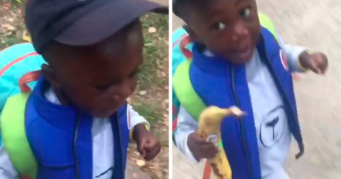 Picture this: a small boy wearing a blue vest, black cap, and a backpack is strolling on the streets of New York, banana in hand, adorably reciting “I am smart, I am blessed, I can do ANYTHING!” over and over with subtle childlike enthusiasm.