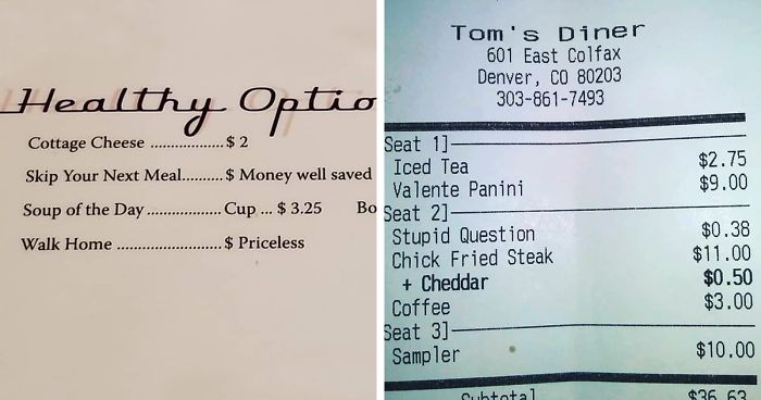 Of course, Tom’s Diner isn’t trying to offend anyone, in fact, their goal is to add some humor on the menu and it seems that it’s working well. After a Redditor shared a bill with a ‘stupid question’ charge, it quickly went viral.